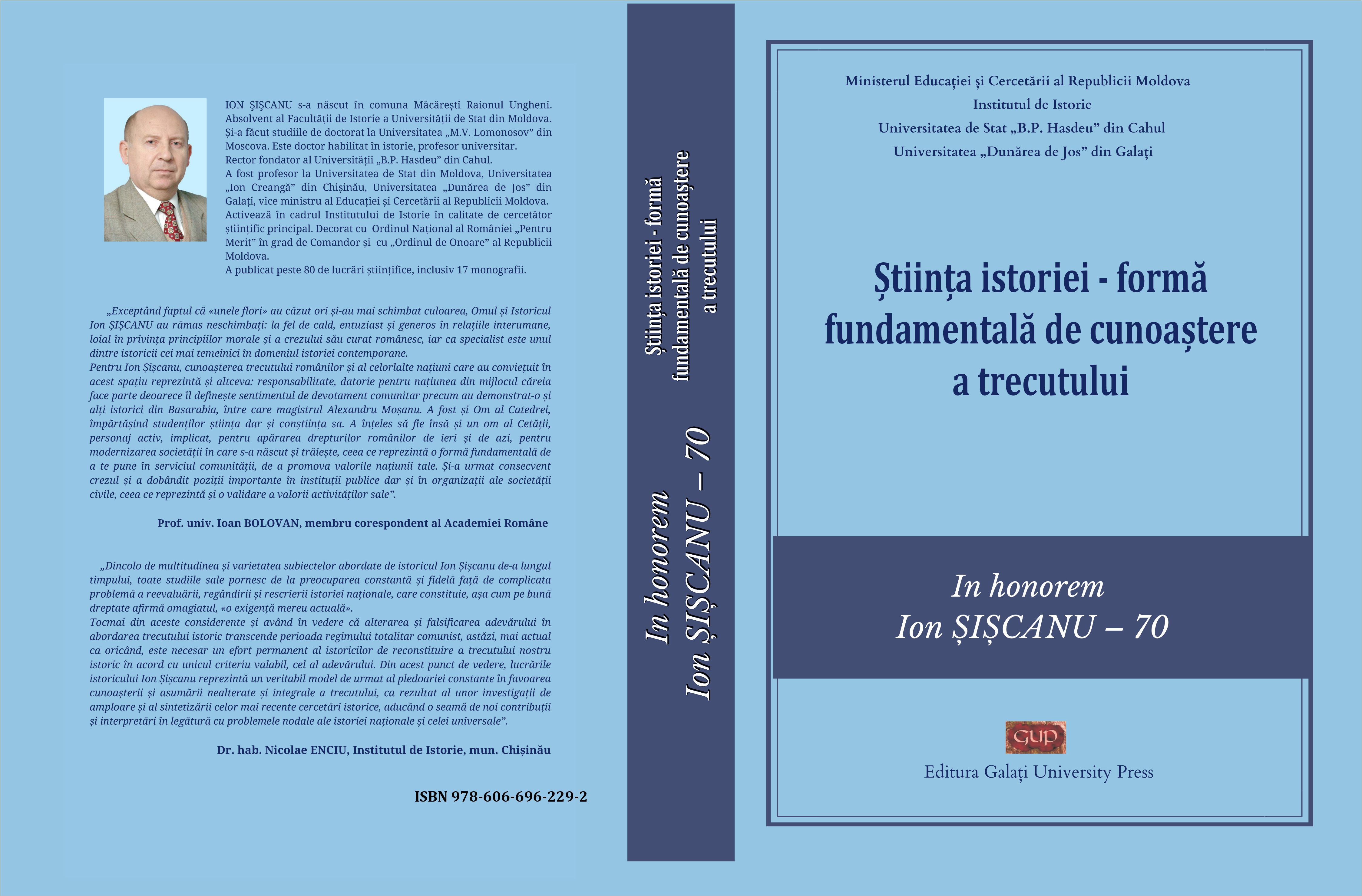 Știința istoriei – formă fundamentală de cunoaștere a trecutului : In honorem Ion ȘIȘCANU – 70